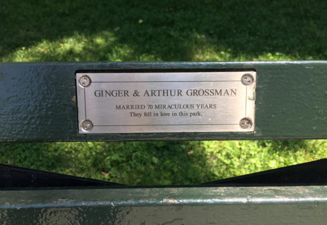 GINGER E ARTHUR GROSSMAN SPOSATI MIRACOLOSAMENTE 70 ANNI SI INNAMORARONO IN QUESTO PARCO. Avvenne tra i viali, ignota la stagione. I loro nomi avvitati su di una panchina di legno dipinta di verde. Non serve altro sapere di nessuno di noi più di quanto può stare inciso su di una targhetta di acciaio centimetri…